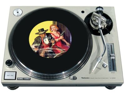 High quality felt turntable slipmat imprinted with an image of Wild West 57. The mat is regular thickness (3/32" or 2mm) and is sized to fit any 7 inch turntable. It is anti static, has a glazed bottom to grip and avoid slippage, feels great and works well for scratching or just playing your records. The image is impregnated into the surface of the mat, so it cannot scratch off or damage the record.