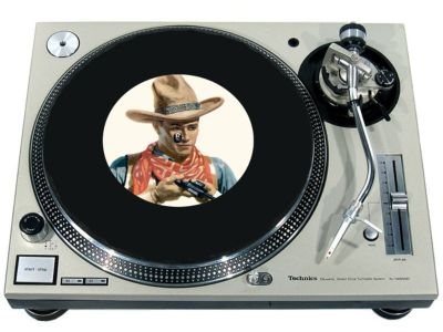 High quality felt turntable slipmat imprinted with an image of Wild West 58. The mat is regular thickness (3/32" or 2mm) and is sized to fit any 7 inch turntable. It is anti static, has a glazed bottom to grip and avoid slippage, feels great and works well for scratching or just playing your records. The image is impregnated into the surface of the mat, so it cannot scratch off or damage the record.