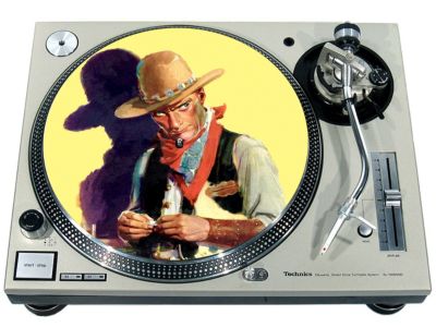 High quality felt turntable slipmat imprinted with an image of Wild West 63. The mat is regular thickness (3/32" or 2mm) and is sized to fit any 12 inch turntable. It is anti static, has a glazed bottom to grip and avoid slippage, feels great and works well for scratching or just playing your records. The image is impregnated into the surface of the mat, so it cannot scratch off or damage the record.