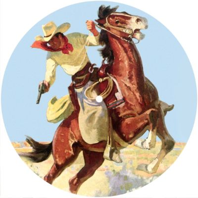 High quality felt turntable slipmat imprinted with an image of Wild West 64. The mat is regular thickness (3/32" or 2mm) and is sized to fit any 7 inch turntable. It is anti static, has a glazed bottom to grip and avoid slippage, feels great and works well for scratching or just playing your records. The image is impregnated into the surface of the mat, so it cannot scratch off or damage the record.