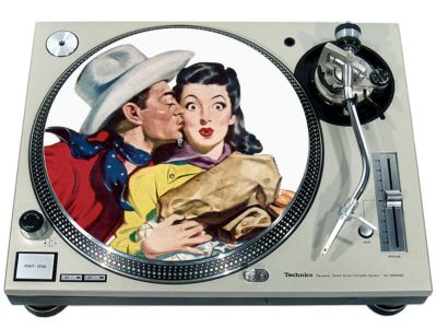 High quality felt turntable slipmat imprinted with an image of Wild West 73. The mat is regular thickness (3/32" or 2mm) and is sized to fit any 12 inch turntable. It is anti static, has a glazed bottom to grip and avoid slippage, feels great and works well for scratching or just playing your records. The image is impregnated into the surface of the mat, so it cannot scratch off or damage the record.
