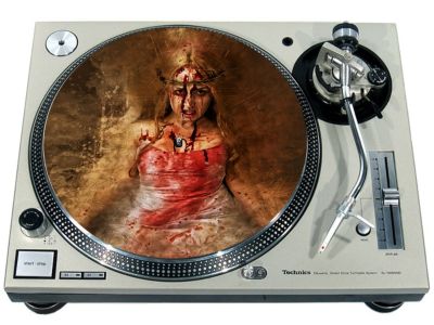 High quality felt turntable slipmat imprinted with an image of Blood Lust. The mat is regular thickness (3/32" or 2mm) and is sized to fit any 12 inch turntable. It is anti static, has a glazed bottom to grip and avoid slippage, feels great and works well for scratching or just playing your records. The image is impregnated into the surface of the mat, so it cannot scratch off or damage the record.