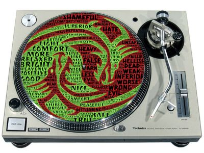 High quality felt turntable slipmat imprinted with an image of Words of Conflict 2. The mat is regular thickness (3/32" or 2mm) and is sized to fit any 12 inch turntable. It is anti static, has a glazed bottom to grip and avoid slippage, feels great and works well for scratching or just playing your records. The image is impregnated into the surface of the mat, so it cannot scratch off or damage the record.