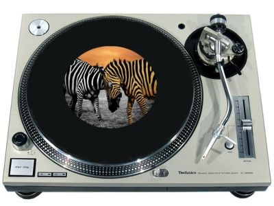 High quality felt turntable slipmat imprinted with an image of Zebra 4. The mat is regular thickness (3/32" or 2mm) and is sized to fit any 7 inch turntable. It is anti static, has a glazed bottom to grip and avoid slippage, feels great and works well for scratching or just playing your records. The image is impregnated into the surface of the mat, so it cannot scratch off or damage the record.