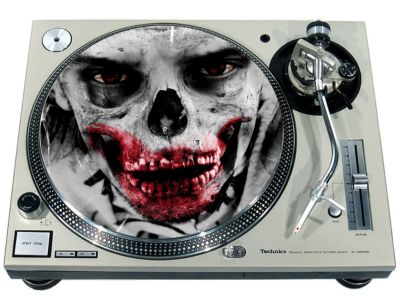 High quality felt turntable slipmat imprinted with an image of Zombie 4. The mat is regular thickness (3/32" or 2mm) and is sized to fit any 12 inch turntable. It is anti static, has a glazed bottom to grip and avoid slippage, feels great and works well for scratching or just playing your records. The image is impregnated into the surface of the mat, so it cannot scratch off or damage the record.
