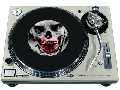 High quality felt turntable slipmat imprinted with an image of Zombie 4. The mat is regular thickness (3/32" or 2mm) and is sized to fit any 7 inch turntable. It is anti static, has a glazed bottom to grip and avoid slippage, feels great and works well for scratching or just playing your records. The image is impregnated into the surface of the mat, so it cannot scratch off or damage the record.