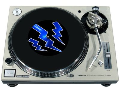 High quality felt turntable slipmat imprinted with an image of Blue Bolts. The mat is regular thickness (3/32" or 2mm) and is sized to fit any 7 inch turntable. It is anti static, has a glazed bottom to grip and avoid slippage, feels great and works well for scratching or just playing your records. The image is impregnated into the surface of the mat, so it cannot scratch off or damage the record.