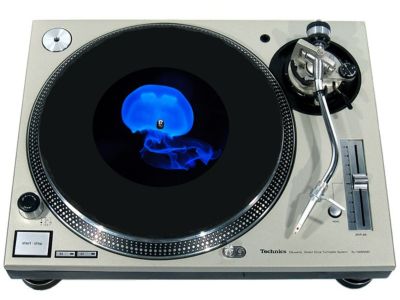 High quality felt turntable slipmat imprinted with an image of Blue Jelly Fish. The mat is regular thickness (3/32" or 2mm) and is sized to fit any 7 inch turntable. It is anti static, has a glazed bottom to grip and avoid slippage, feels great and works well for scratching or just playing your records. The image is impregnated into the surface of the mat, so it cannot scratch off or damage the record.