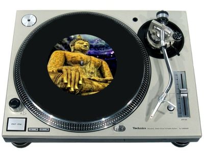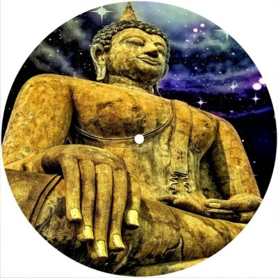High quality felt turntable slipmat imprinted with an image of Buddha 3. The mat is regular thickness (3/32" or 2mm) and is sized to fit any 7 inch turntable. It is anti static, has a glazed bottom to grip and avoid slippage, feels great and works well for scratching or just playing your records. The image is impregnated into the surface of the mat, so it cannot scratch off or damage the record.