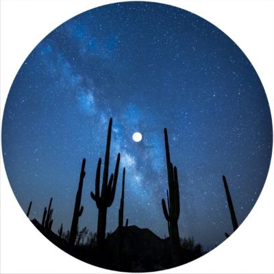 High quality felt turntable slipmat imprinted with an image of Cactus Sky. The mat is regular thickness (3/32" or 2mm) and is sized to fit any 7 inch turntable. It is anti static, has a glazed bottom to grip and avoid slippage, feels great and works well for scratching or just playing your records. The image is impregnated into the surface of the mat, so it cannot scratch off or damage the record.