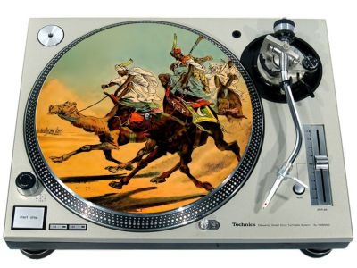 High quality felt turntable slipmat imprinted with an image of Camel Race. The mat is regular thickness (3/32" or 2mm) and is sized to fit any 12 inch turntable. It is anti static, has a glazed bottom to grip and avoid slippage, feels great and works well for scratching or just playing your records. The image is impregnated into the surface of the mat, so it cannot scratch off or damage the record.