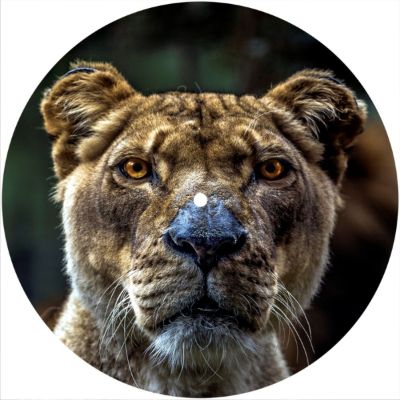 High quality felt turntable slipmat imprinted with an image of Cat Lion Dark. The mat is regular thickness (3/32" or 2mm) and is sized to fit any 7 inch turntable. It is anti static, has a glazed bottom to grip and avoid slippage, feels great and works well for scratching or just playing your records. The image is impregnated into the surface of the mat, so it cannot scratch off or damage the record.