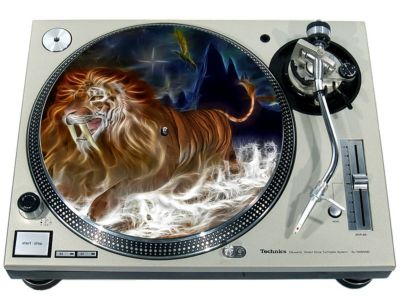 High quality felt turntable slipmat imprinted with an image of Cat Neon Lion. The mat is regular thickness (3/32" or 2mm) and is sized to fit any 12 inch turntable. It is anti static, has a glazed bottom to grip and avoid slippage, feels great and works well for scratching or just playing your records. The image is impregnated into the surface of the mat, so it cannot scratch off or damage the record.