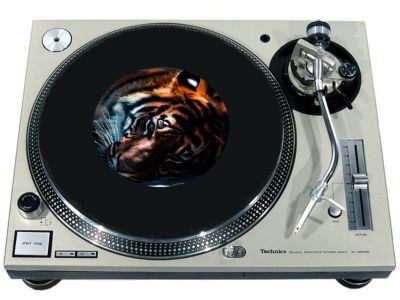 High quality felt turntable slipmat imprinted with an image of Cat Tiger 2. The mat is regular thickness (3/32" or 2mm) and is sized to fit any 7 inch turntable. It is anti static, has a glazed bottom to grip and avoid slippage, feels great and works well for scratching or just playing your records. The image is impregnated into the surface of the mat, so it cannot scratch off or damage the record.