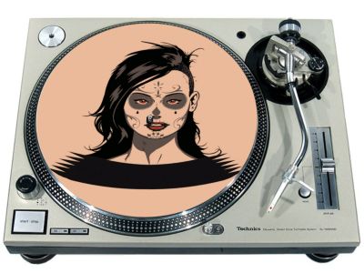 High quality felt turntable slipmat imprinted with an image of Catrina. The mat is regular thickness (3/32" or 2mm) and is sized to fit any 12 inch turntable. It is anti static, has a glazed bottom to grip and avoid slippage, feels great and works well for scratching or just playing your records. The image is impregnated into the surface of the mat, so it cannot scratch off or damage the record.