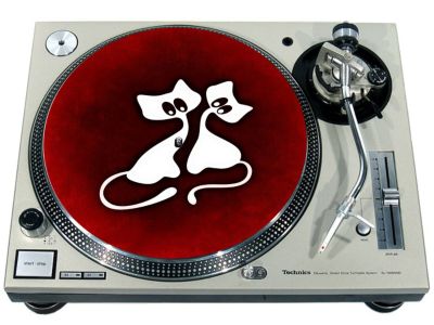 High quality felt turntable slipmat imprinted with an image of Cats Pair. The mat is regular thickness (3/32" or 2mm) and is sized to fit any 12 inch turntable. It is anti static, has a glazed bottom to grip and avoid slippage, feels great and works well for scratching or just playing your records. The image is impregnated into the surface of the mat, so it cannot scratch off or damage the record.