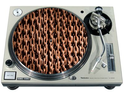 High quality felt turntable slipmat imprinted with an image of Chains 1. The mat is regular thickness (3/32" or 2mm) and is sized to fit any 12 inch turntable. It is anti static, has a glazed bottom to grip and avoid slippage, feels great and works well for scratching or just playing your records. The image is impregnated into the surface of the mat, so it cannot scratch off or damage the record.