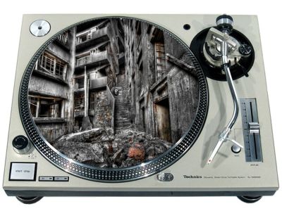 High quality felt turntable slipmat imprinted with an image of City Abandoned. The mat is regular thickness (3/32" or 2mm) and is sized to fit any 12 inch turntable. It is anti static, has a glazed bottom to grip and avoid slippage, feels great and works well for scratching or just playing your records. The image is impregnated into the surface of the mat, so it cannot scratch off or damage the record.