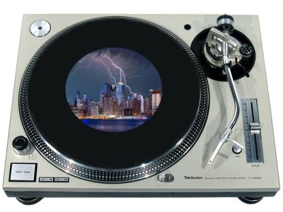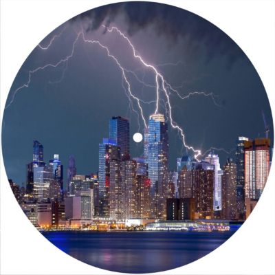 High quality felt turntable slipmat imprinted with an image of City New York Storm. The mat is regular thickness (3/32" or 2mm) and is sized to fit any 7 inch turntable. It is anti static, has a glazed bottom to grip and avoid slippage, feels great and works well for scratching or just playing your records. The image is impregnated into the surface of the mat, so it cannot scratch off or damage the record.