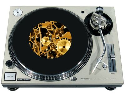 High quality felt turntable slipmat imprinted with an image of Clockwork 1. The mat is regular thickness (3/32" or 2mm) and is sized to fit any 7 inch turntable. It is anti static, has a glazed bottom to grip and avoid slippage, feels great and works well for scratching or just playing your records. The image is impregnated into the surface of the mat, so it cannot scratch off or damage the record.