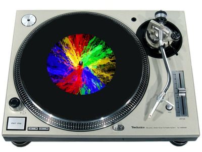 High quality felt turntable slipmat imprinted with an image of Colorful Splash. The mat is regular thickness (3/32" or 2mm) and is sized to fit any 7 inch turntable. It is anti static, has a glazed bottom to grip and avoid slippage, feels great and works well for scratching or just playing your records. The image is impregnated into the surface of the mat, so it cannot scratch off or damage the record.