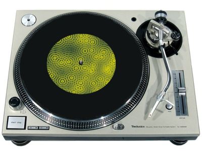 High quality felt turntable slipmat imprinted with an image of Crazy Ripples YE. The mat is regular thickness (3/32" or 2mm) and is sized to fit any 7 inch turntable. It is anti static, has a glazed bottom to grip and avoid slippage, feels great and works well for scratching or just playing your records. The image is impregnated into the surface of the mat, so it cannot scratch off or damage the record.