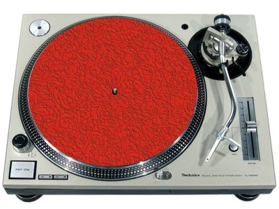 High quality felt turntable slipmat imprinted with an image of Crinkles Red. The mat is regular thickness (3/32" or 2mm) and is sized to fit any 12 inch turntable. It is anti static, has a glazed bottom to grip and avoid slippage, feels great and works well for scratching or just playing your records. The image is impregnated into the surface of the mat, so it cannot scratch off or damage the record.