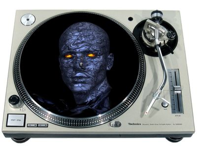 High quality felt turntable slipmat imprinted with an image of Cyborg 1. The mat is regular thickness (3/32" or 2mm) and is sized to fit any 12 inch turntable. It is anti static, has a glazed bottom to grip and avoid slippage, feels great and works well for scratching or just playing your records. The image is impregnated into the surface of the mat, so it cannot scratch off or damage the record.