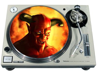 High quality felt turntable slipmat imprinted with an image of Demon Glare. The mat is regular thickness (3/32" or 2mm) and is sized to fit any 12 inch turntable. It is anti static, has a glazed bottom to grip and avoid slippage, feels great and works well for scratching or just playing your records. The image is impregnated into the surface of the mat, so it cannot scratch off or damage the record.