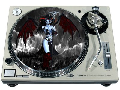 High quality felt turntable slipmat imprinted with an image of Demonesque 2. The mat is regular thickness (3/32" or 2mm) and is sized to fit any 12 inch turntable. It is anti static, has a glazed bottom to grip and avoid slippage, feels great and works well for scratching or just playing your records. The image is impregnated into the surface of the mat, so it cannot scratch off or damage the record.