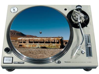 High quality felt turntable slipmat imprinted with an image of Desert Bus. The mat is regular thickness (3/32" or 2mm) and is sized to fit any 12 inch turntable. It is anti static, has a glazed bottom to grip and avoid slippage, feels great and works well for scratching or just playing your records. The image is impregnated into the surface of the mat, so it cannot scratch off or damage the record.