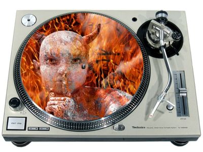 High quality felt turntable slipmat imprinted with an image of Devil Flaus. The mat is regular thickness (3/32" or 2mm) and is sized to fit any 12 inch turntable. It is anti static, has a glazed bottom to grip and avoid slippage, feels great and works well for scratching or just playing your records. The image is impregnated into the surface of the mat, so it cannot scratch off or damage the record.