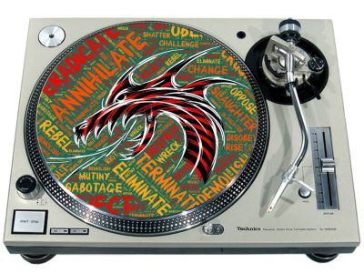 High quality felt turntable slipmat imprinted with an image of Dragon Destroy. The mat is regular thickness (3/32" or 2mm) and is sized to fit any 12 inch turntable. It is anti static, has a glazed bottom to grip and avoid slippage, feels great and works well for scratching or just playing your records. The image is impregnated into the surface of the mat, so it cannot scratch off or damage the record.