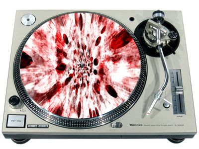 High quality felt turntable slipmat imprinted with an image of Explosive Chaos 1. The mat is regular thickness (3/32" or 2mm) and is sized to fit any 12 inch turntable. It is anti static, has a glazed bottom to grip and avoid slippage, feels great and works well for scratching or just playing your records. The image is impregnated into the surface of the mat, so it cannot scratch off or damage the record.