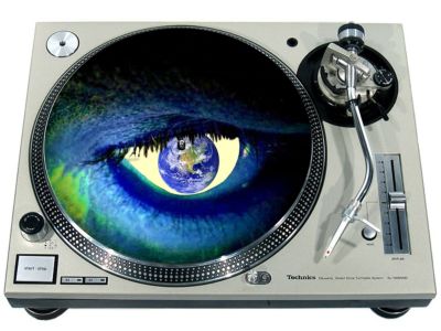 High quality felt turntable slipmat imprinted with an image of Eye For The World. The mat is regular thickness (3/32" or 2mm) and is sized to fit any 12 inch turntable. It is anti static, has a glazed bottom to grip and avoid slippage, feels great and works well for scratching or just playing your records. The image is impregnated into the surface of the mat, so it cannot scratch off or damage the record.