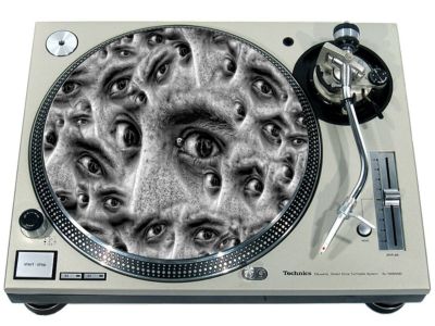 High quality felt turntable slipmat imprinted with an image of Eyes 1. The mat is regular thickness (3/32" or 2mm) and is sized to fit any 12 inch turntable. It is anti static, has a glazed bottom to grip and avoid slippage, feels great and works well for scratching or just playing your records. The image is impregnated into the surface of the mat, so it cannot scratch off or damage the record.