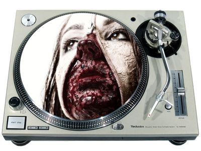 High quality felt turntable slipmat imprinted with an image of Face Unzipped. The mat is regular thickness (3/32" or 2mm) and is sized to fit any 12 inch turntable. It is anti static, has a glazed bottom to grip and avoid slippage, feels great and works well for scratching or just playing your records. The image is impregnated into the surface of the mat, so it cannot scratch off or damage the record.