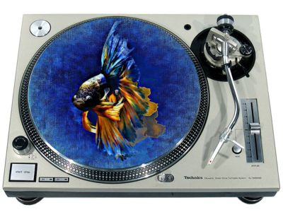 High quality felt turntable slipmat imprinted with an image of Fighting Fish. The mat is regular thickness (3/32" or 2mm) and is sized to fit any 12 inch turntable. It is anti static, has a glazed bottom to grip and avoid slippage, feels great and works well for scratching or just playing your records. The image is impregnated into the surface of the mat, so it cannot scratch off or damage the record.