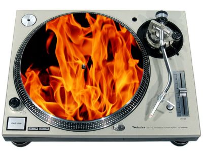 High quality felt turntable slipmat imprinted with an image of Fire 4. The mat is regular thickness (3/32" or 2mm) and is sized to fit any 12 inch turntable. It is anti static, has a glazed bottom to grip and avoid slippage, feels great and works well for scratching or just playing your records. The image is impregnated into the surface of the mat, so it cannot scratch off or damage the record.