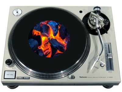 High quality felt turntable slipmat imprinted with an image of Fire 6. The mat is regular thickness (3/32" or 2mm) and is sized to fit any 7 inch turntable. It is anti static, has a glazed bottom to grip and avoid slippage, feels great and works well for scratching or just playing your records. The image is impregnated into the surface of the mat, so it cannot scratch off or damage the record.