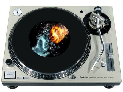High quality felt turntable slipmat imprinted with an image of Fire And Ice. The mat is regular thickness (3/32" or 2mm) and is sized to fit any 7 inch turntable. It is anti static, has a glazed bottom to grip and avoid slippage, feels great and works well for scratching or just playing your records. The image is impregnated into the surface of the mat, so it cannot scratch off or damage the record.