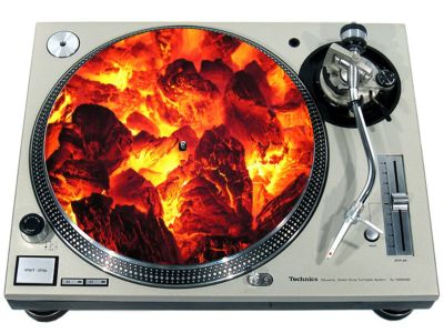 High quality felt turntable slipmat imprinted with an image of Fire Embers. The mat is regular thickness (3/32" or 2mm) and is sized to fit any 12 inch turntable. It is anti static, has a glazed bottom to grip and avoid slippage, feels great and works well for scratching or just playing your records. The image is impregnated into the surface of the mat, so it cannot scratch off or damage the record.