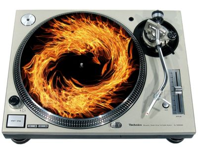 High quality felt turntable slipmat imprinted with an image of Fire Ring. The mat is regular thickness (3/32" or 2mm) and is sized to fit any 12 inch turntable. It is anti static, has a glazed bottom to grip and avoid slippage, feels great and works well for scratching or just playing your records. The image is impregnated into the surface of the mat, so it cannot scratch off or damage the record.