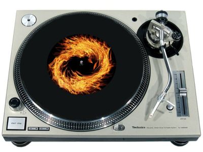 High quality felt turntable slipmat imprinted with an image of Fire Ring. The mat is regular thickness (3/32" or 2mm) and is sized to fit any 7 inch turntable. It is anti static, has a glazed bottom to grip and avoid slippage, feels great and works well for scratching or just playing your records. The image is impregnated into the surface of the mat, so it cannot scratch off or damage the record.