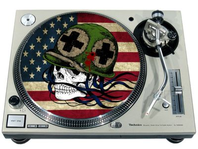 High quality felt turntable slipmat imprinted with an image of Flag American Soldier. The mat is regular thickness (3/32" or 2mm) and is sized to fit any 12 inch turntable. It is anti static, has a glazed bottom to grip and avoid slippage, feels great and works well for scratching or just playing your records. The image is impregnated into the surface of the mat, so it cannot scratch off or damage the record.