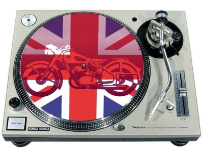 High quality felt turntable slipmat imprinted with an image of Flag Brit Bike 1. The mat is regular thickness (3/32" or 2mm) and is sized to fit any 12 inch turntable. It is anti static, has a glazed bottom to grip and avoid slippage, feels great and works well for scratching or just playing your records. The image is impregnated into the surface of the mat, so it cannot scratch off or damage the record.