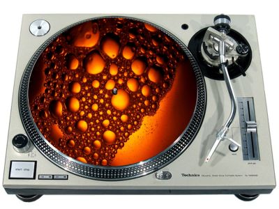 High quality felt turntable slipmat imprinted with an image of Amber Bubbles. The mat is regular thickness (3/32" or 2mm) and is sized to fit any 12 inch turntable. It is anti static, has a glazed bottom to grip and avoid slippage, feels great and works well for scratching or just playing your records. The image is impregnated into the surface of the mat, so it cannot scratch off or damage the record.