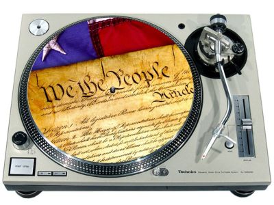 High quality felt turntable slipmat imprinted with an image of Flag US Patriot Constitution. The mat is regular thickness (3/32" or 2mm) and is sized to fit any 12 inch turntable. It is anti static, has a glazed bottom to grip and avoid slippage, feels great and works well for scratching or just playing your records. The image is impregnated into the surface of the mat, so it cannot scratch off or damage the record.