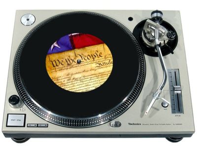 High quality felt turntable slipmat imprinted with an image of Flag US Patriot Constitution. The mat is regular thickness (3/32" or 2mm) and is sized to fit any 7 inch turntable. It is anti static, has a glazed bottom to grip and avoid slippage, feels great and works well for scratching or just playing your records. The image is impregnated into the surface of the mat, so it cannot scratch off or damage the record.