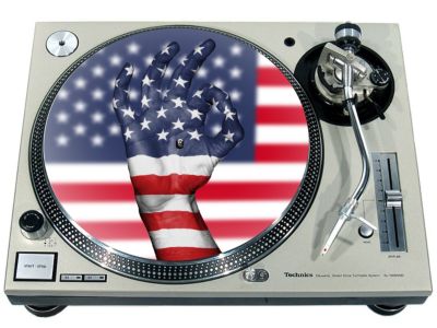 High quality felt turntable slipmat imprinted with an image of Flag USA Hand. The mat is regular thickness (3/32" or 2mm) and is sized to fit any 12 inch turntable. It is anti static, has a glazed bottom to grip and avoid slippage, feels great and works well for scratching or just playing your records. The image is impregnated into the surface of the mat, so it cannot scratch off or damage the record.
